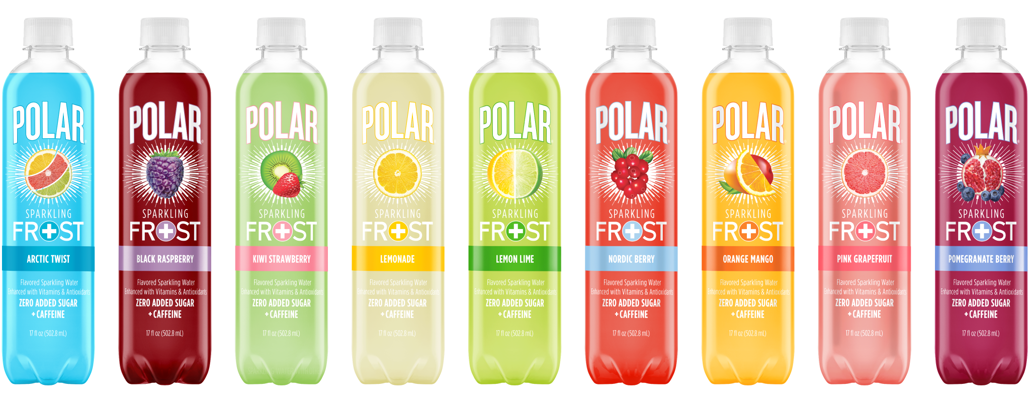 Polar® Sparkling FROST delivers your flavorite bold fruit flavors with the added energy of CAFFEINE, plus the added benefits of vitamins & antioxidants. Only 10-calories and ZERO added sugar.